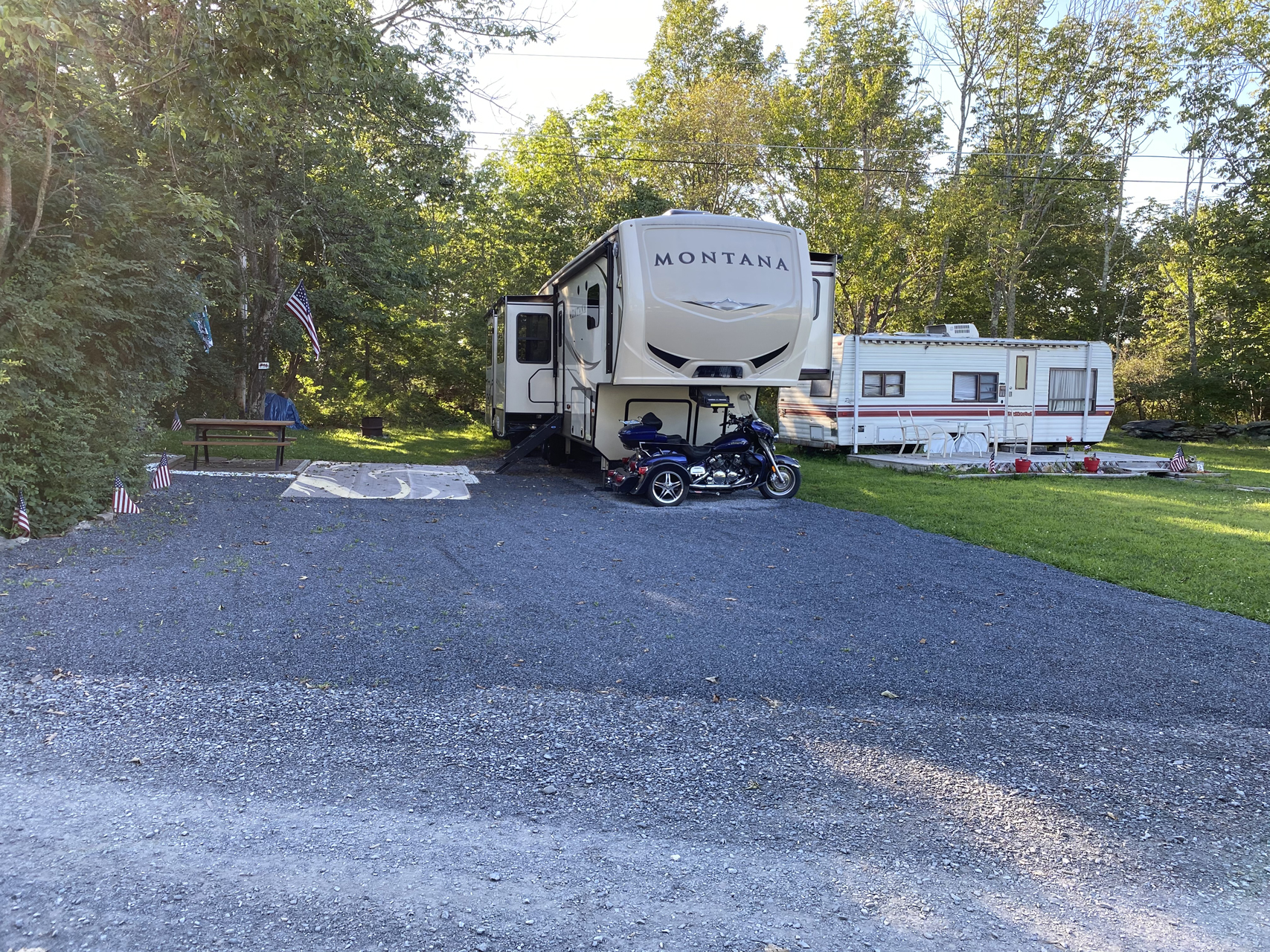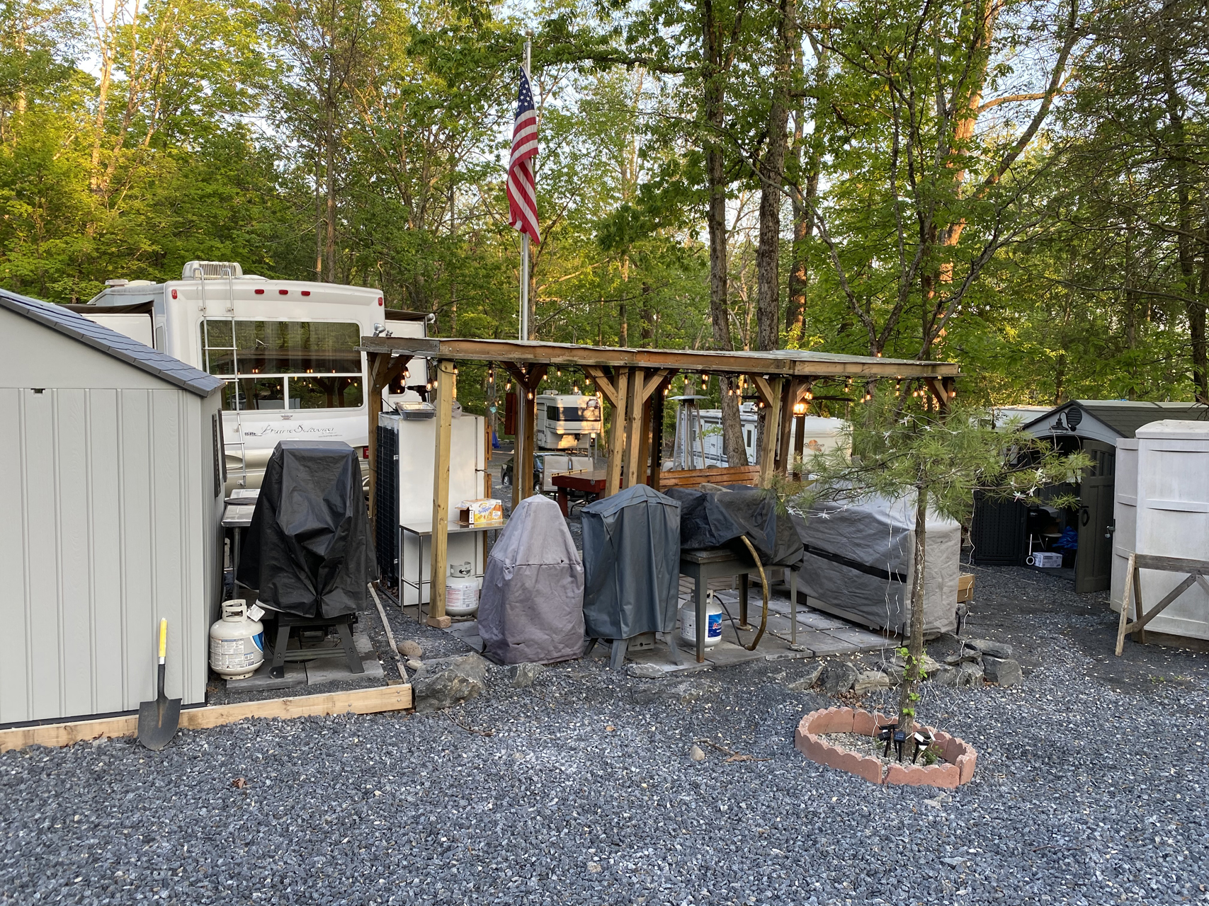 So, the answer is the Seasonal Site. For a huge discount, you park your camper in a campground from April to November and perhaps, even the alternate part of the year, if your campground offers winter camping. There is something nice about leaving work, and within the hour there are steaks coming off your permanent grill, a beer in your hand, a fire in your fireplace. You look around, and all you need is your own back yard.