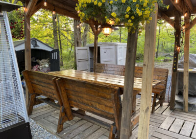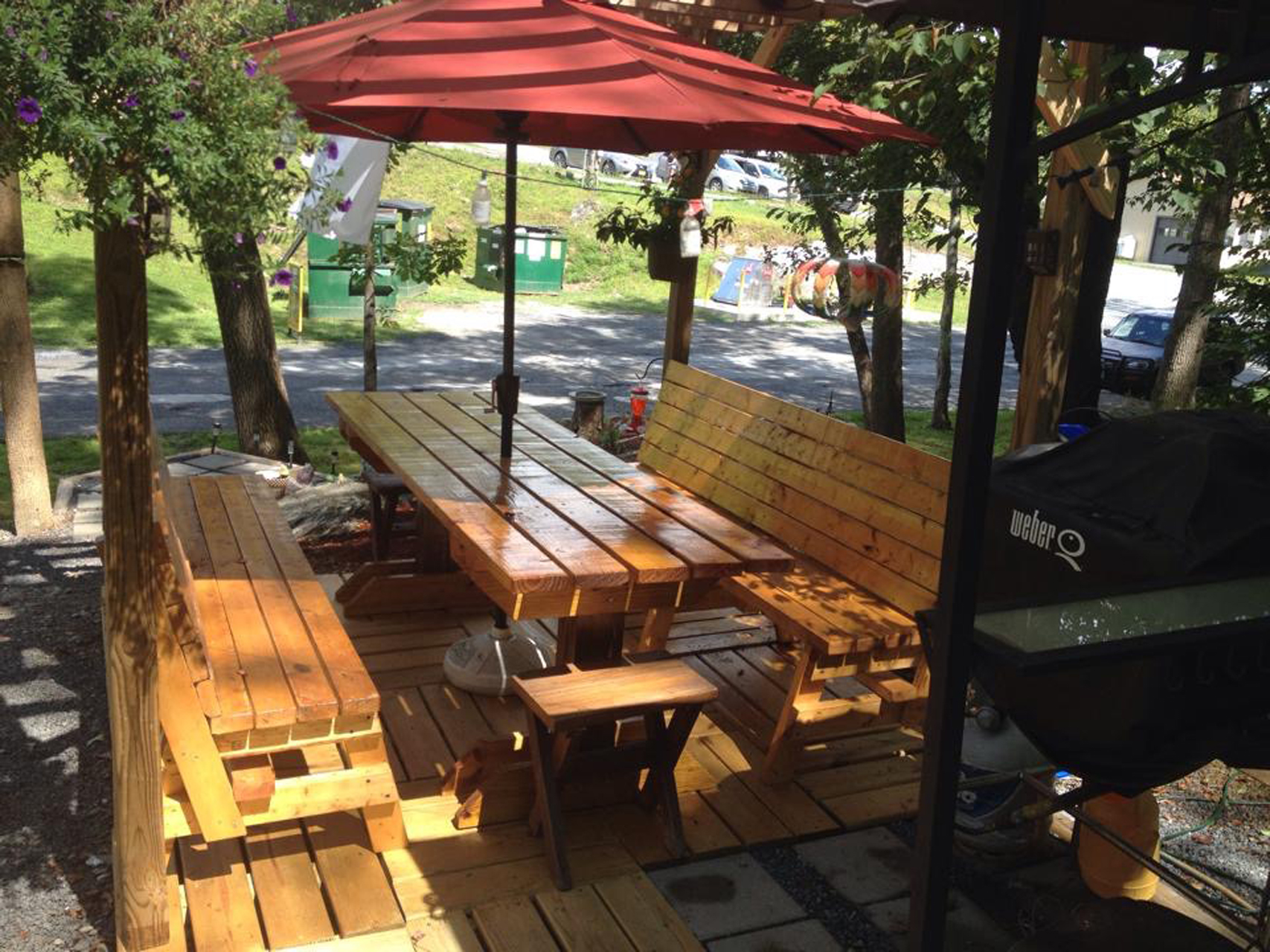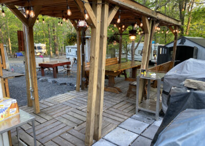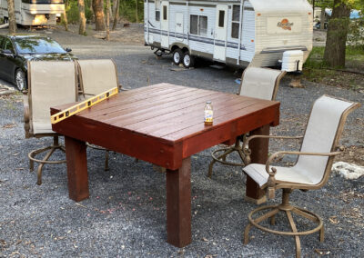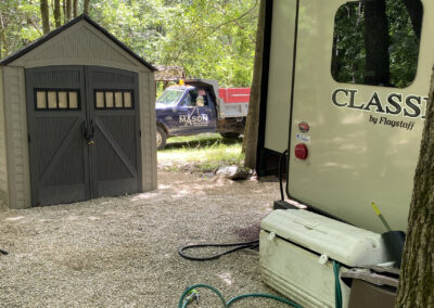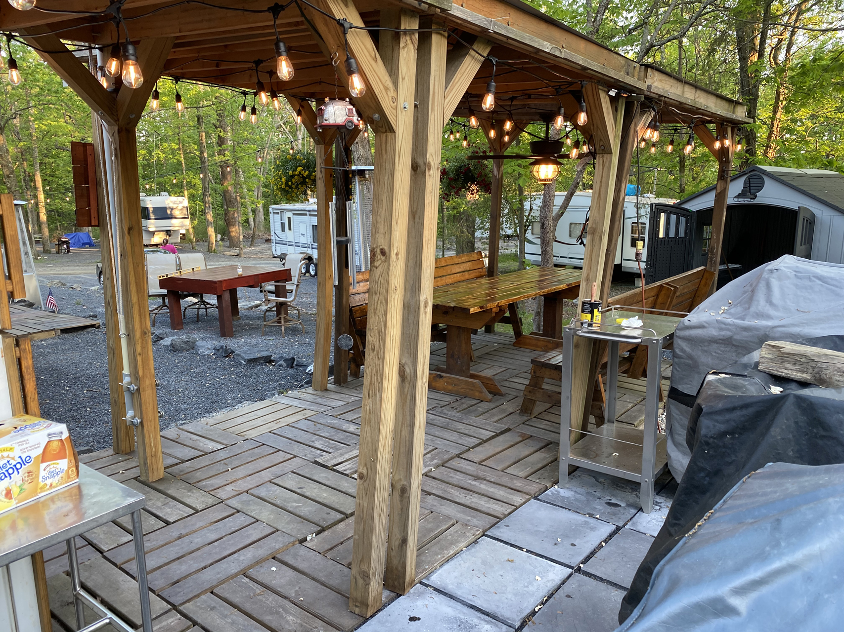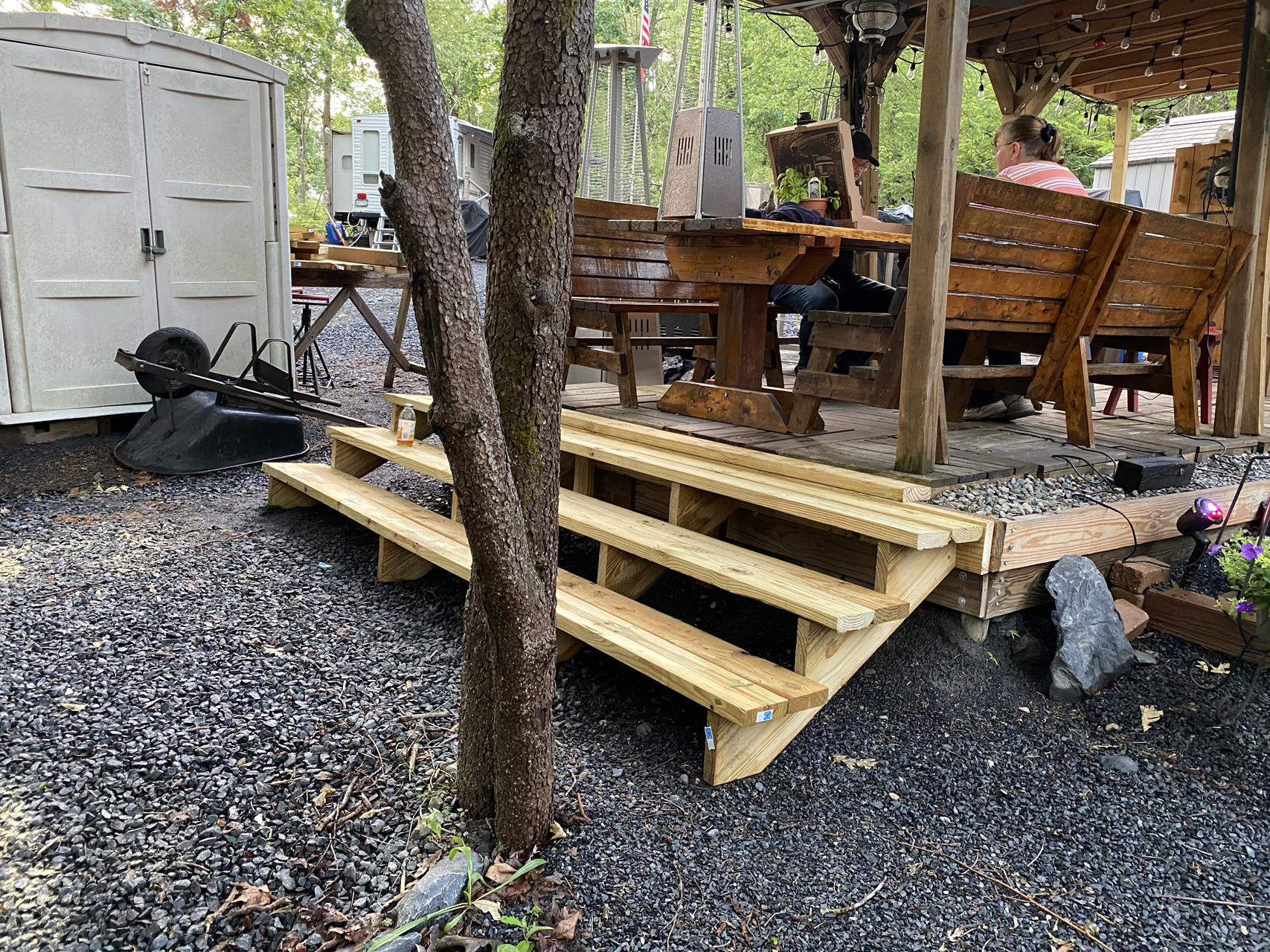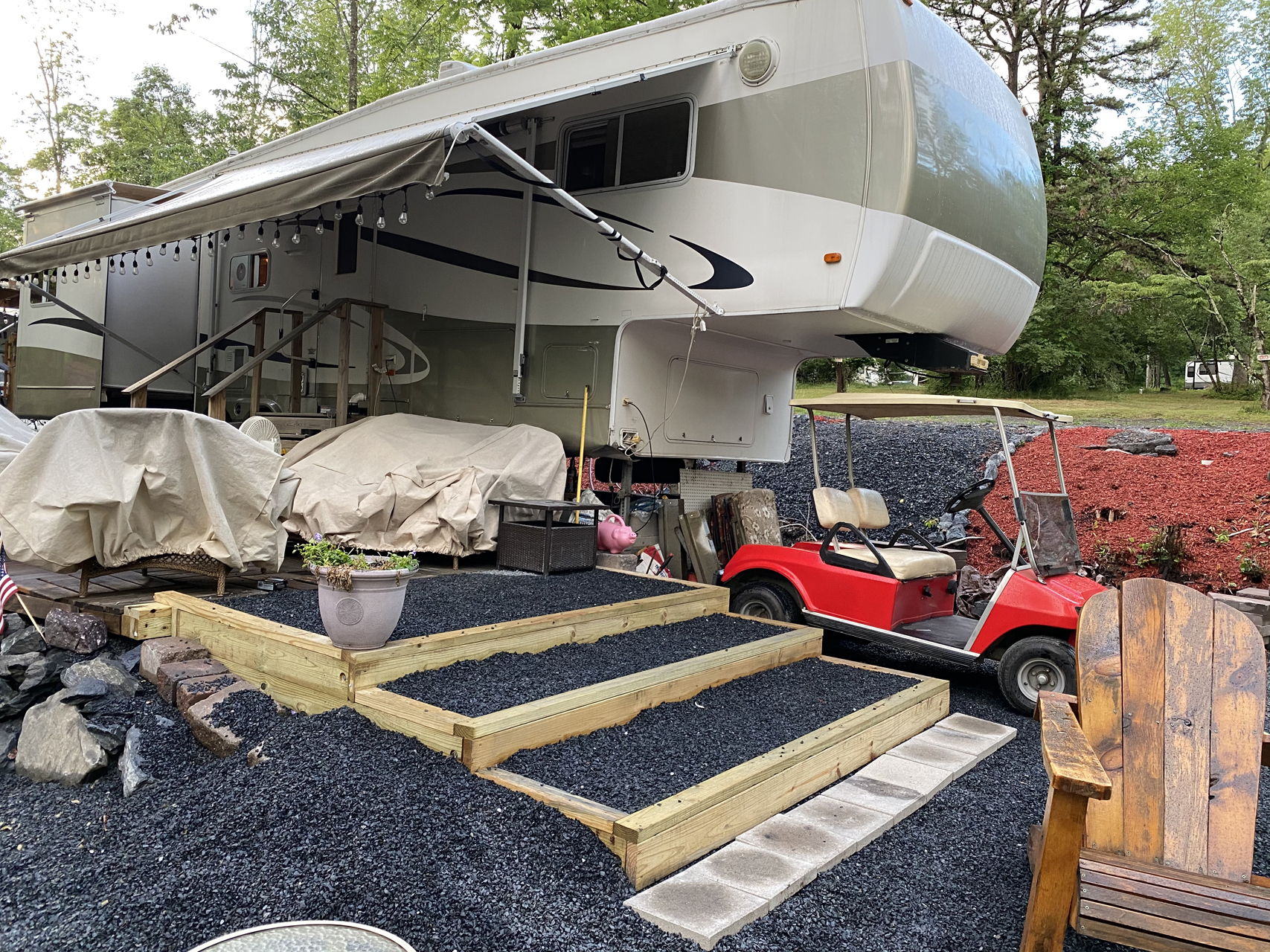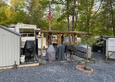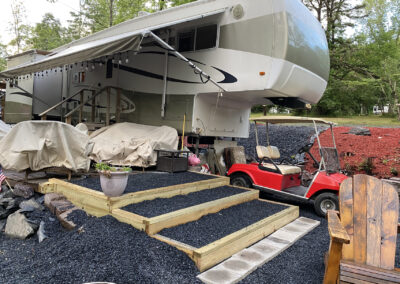 we keep in mind that it is far easier to build than maintain, and many Campground owners do not want anything erected that ca not be removed within 48 hours, lets something happen to sever your relationship, and it all need to go away. In this spirit we design with low maintenance, or no maintenance materials. we blend with the surroundings to keep the campground owner or HOA happy, while still achieving your desire for the prefect space to get away, forget the words pressures and be at one within the safety of your family.